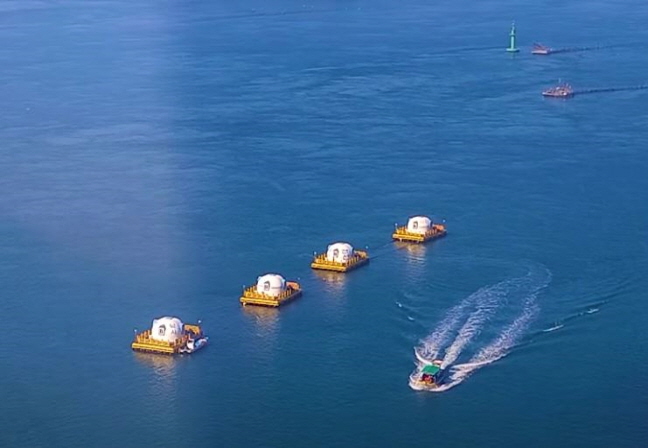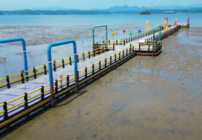 바다위를 걷는 다리와 산책로 낚시터 해상펜션등 어린이 놀이터