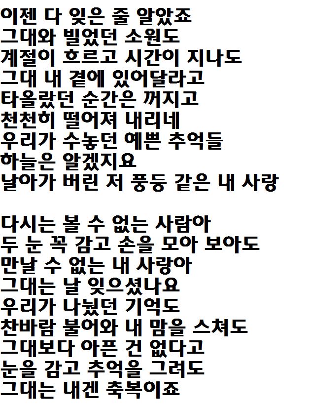 도입부 첼로 선율이 잔잔하면서도 풍성한 느낌을 주며 애절한 가사로 가슴을 떨리게 하네요